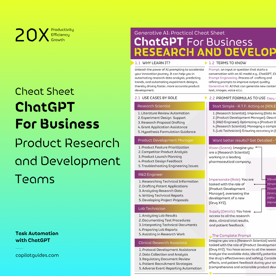 ChatGPT for Product Research and Development (R&D) Teams Cheat Sheet